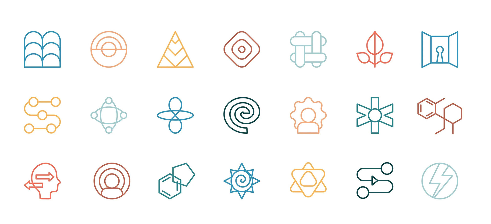 The visual identity centers on a monogram combining the letters “B” and “A”, creating an overlap in which one letter cannot be perceived without the other. This linear symbol evokes the interconnection between body and mind, as well as between the conscious and the unconscious. The principle of overlapping extends throughout the visual system and iconography.