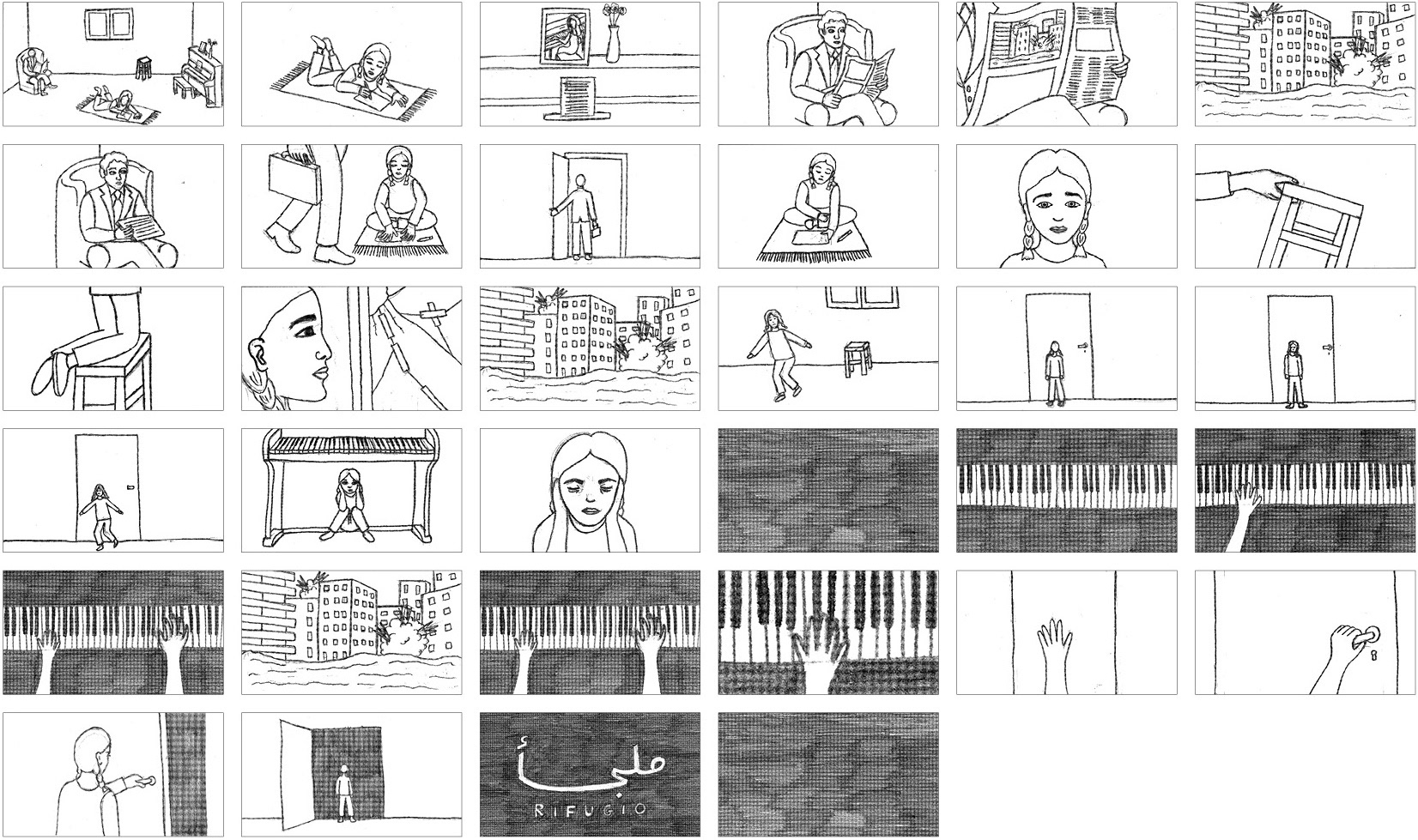Rifugio (in Arabic: ملجأ, meaning "shelter") explores how the war seeps into everything, even the most intimate and sacred spaces, like home. When violence invades all that remains, a child’s imagination becomes the only possible refuge.