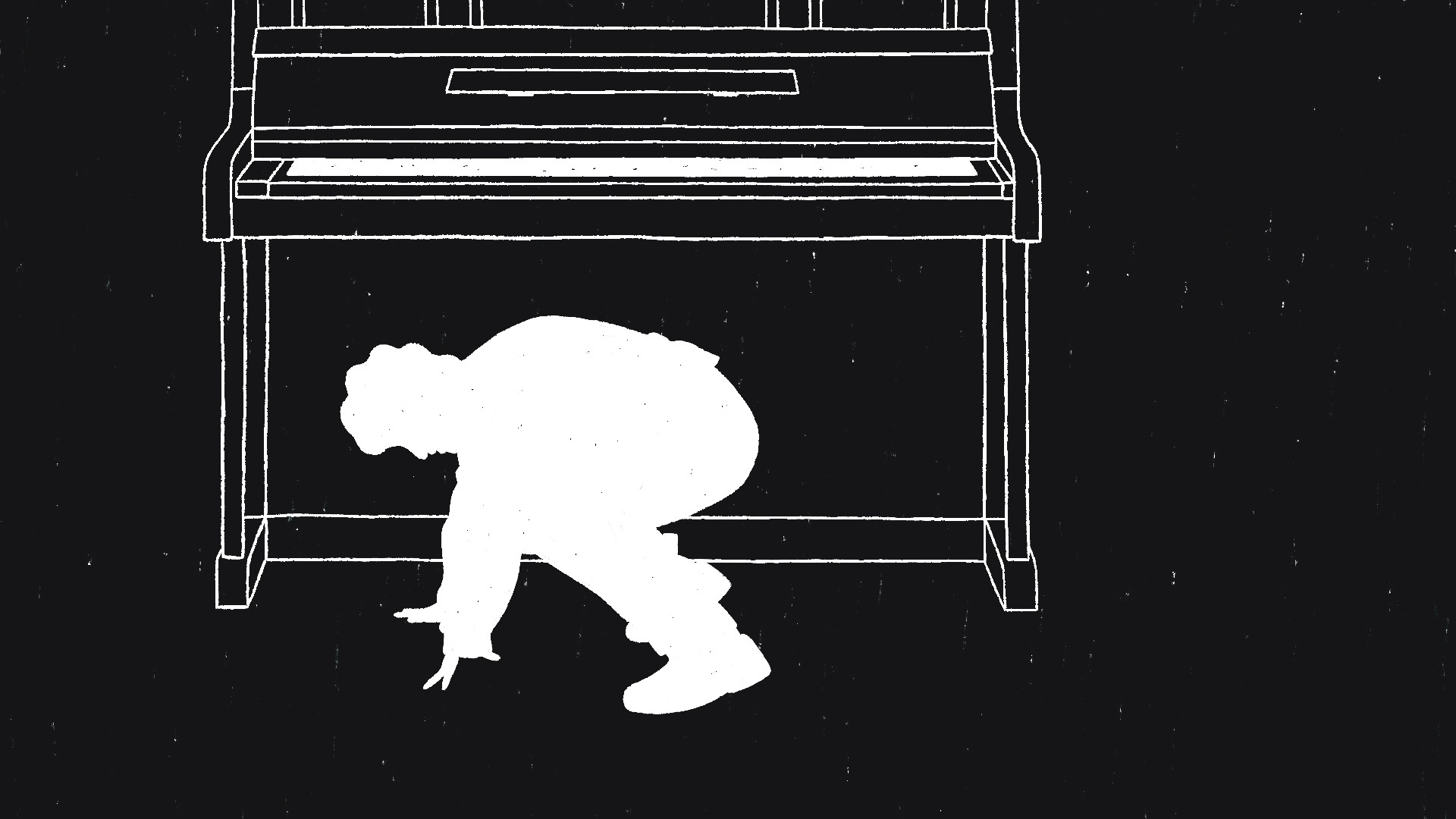 A boy finds himself alone at home after his father leaves for work. He stops drawing when a persistent droning sound grows louder and louder. Curious and alarmed, he looks out the window—just as the bombing begins. Terrified, he runs and hides under the piano, closing his eyes and covering his ears. Then, as if in a dream, hands appear on the keys, playing a melody that gradually rises above the sound of war.