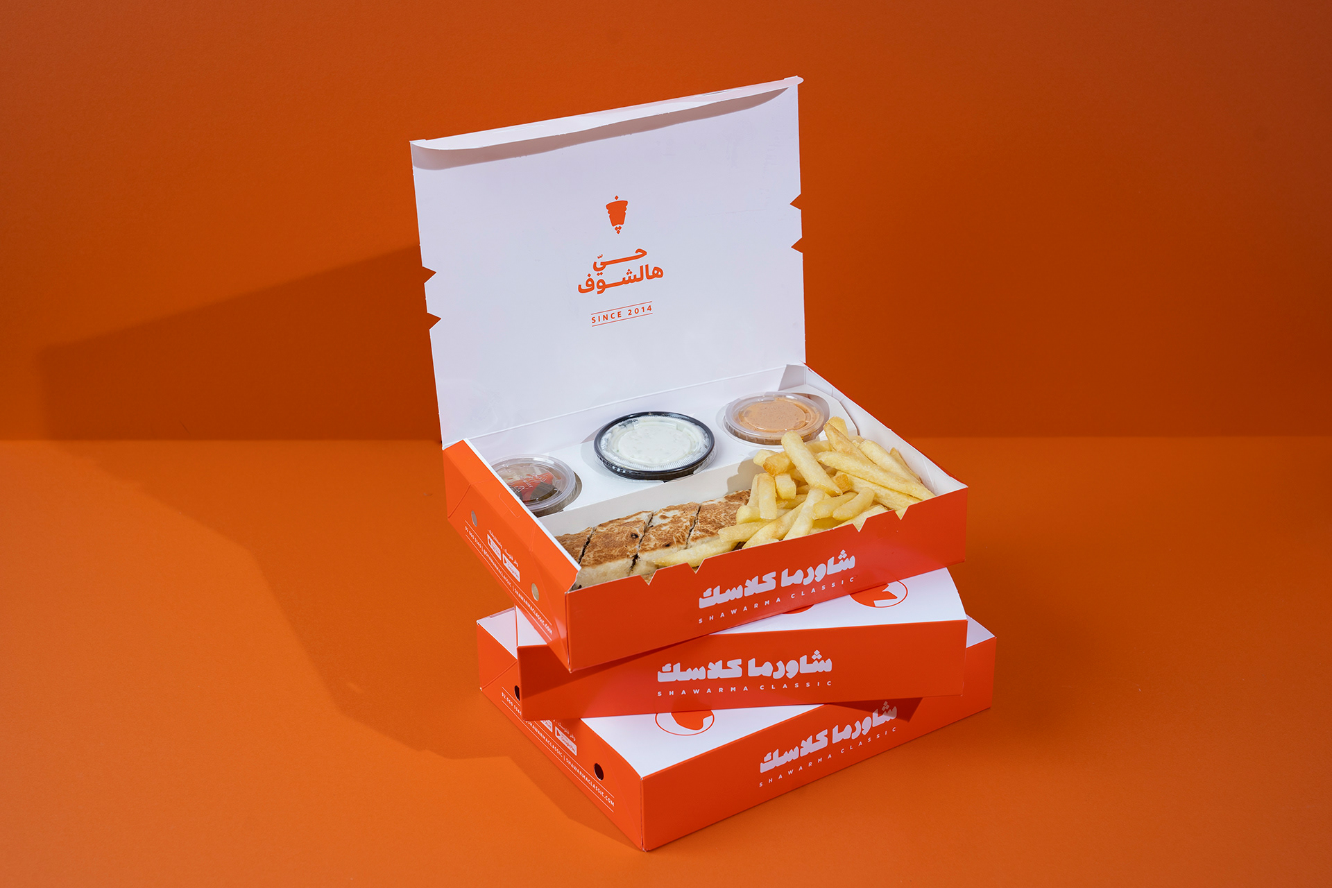 The bilingual logo prioritized the Arabic language to resonate with the Saudi audience. The Arabic logotype was designed with a thicker, bold appearance, evoking the shape of a shawarma skewer or a wrapped shawarma sandwich. This design choice ensured a friendlier and approachable look while maintaining a strong visual identity.